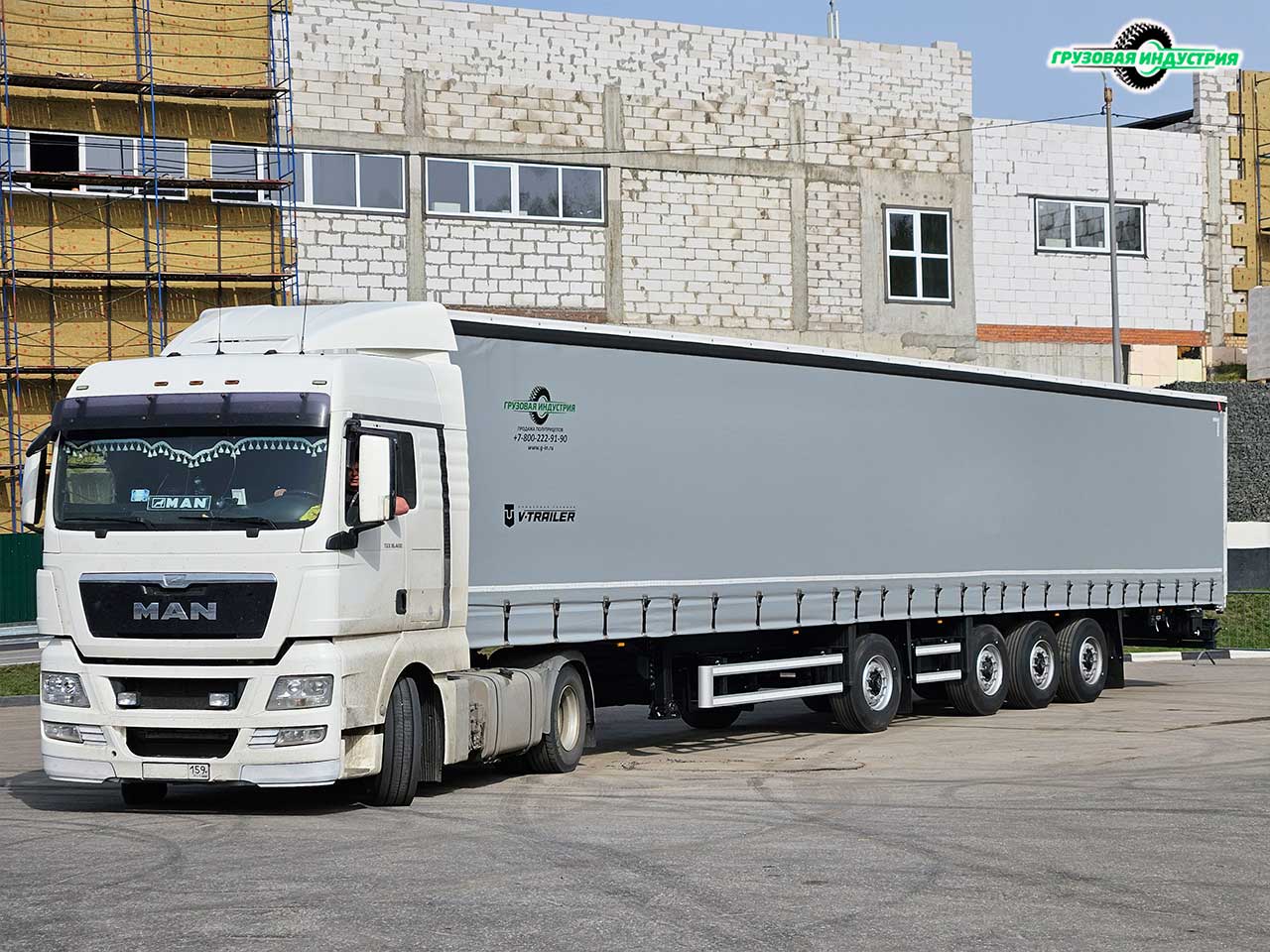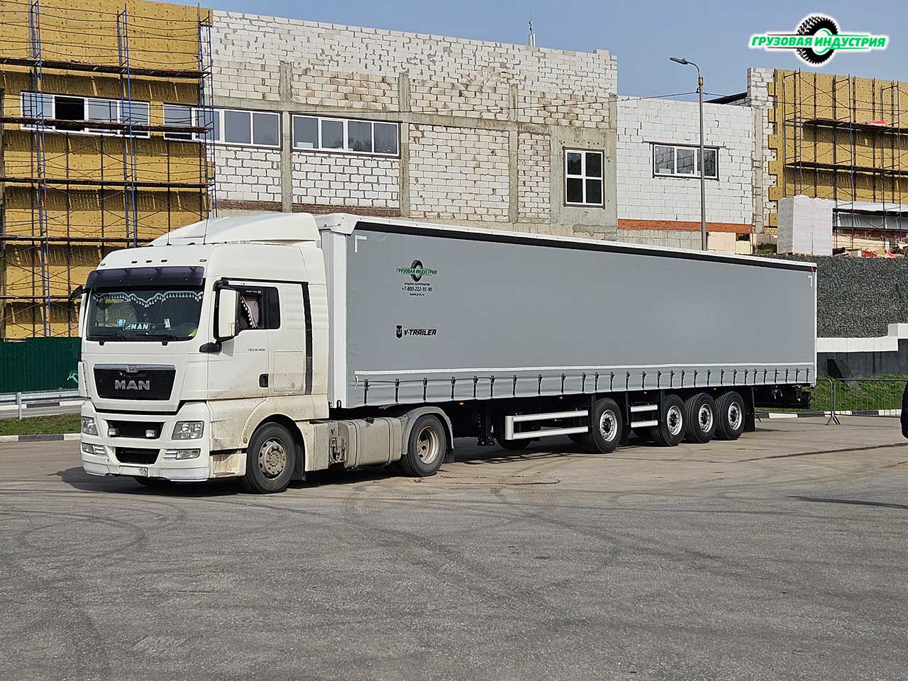 Отгрузка сцепки MAN 4x2 и тентованного полуприцепа V-trailer 332 в Москву.
